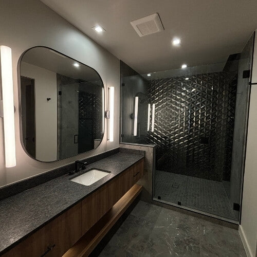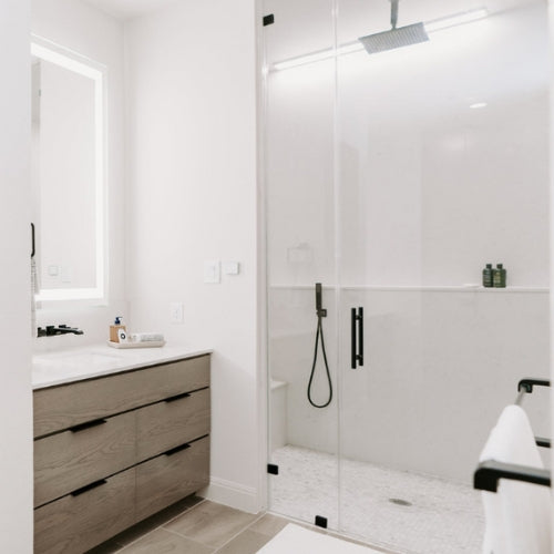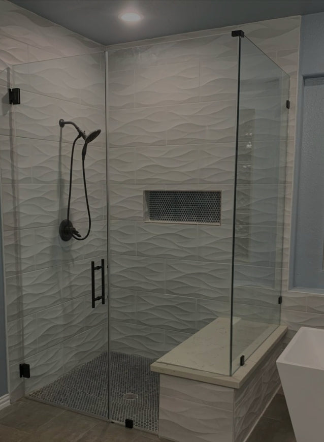 We offer a wide range of custom glass shower enclosures designed to elevate the look and functionality of your bathroom. Whether you're looking for sleek frameless designs, classic framed options, or semi-frameless enclosures, our expert team will help you find the perfect fit for your space. We offer a variety of glass styles, including clear, frosted, rain, and textured glass, each tailored to enhance privacy and match your desired aesthetic. Our enclosures are crafted with high-quality materials for durability and ease of maintenance. With numerous hardware finishes and customizable design features, we create personalized shower solutions that blend luxury and practicality. Let us bring your vision to life and transform your bathroom into a modern, spa-like retreat.